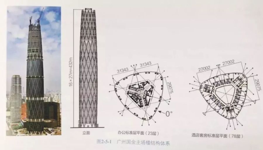 合理的体型,平面形状类似三角形,其三边向外弧形突出,三夹角为圆弧形,能明显减少风荷载,因而可以减少结构的侧移。