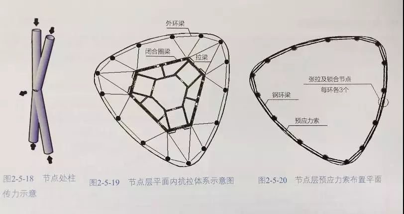 大部分竖向荷载直接由主要抗弯构件承受,这使主要的抗颠覆构建受到预压而有助于提高它们抵抗由侧向荷载引起的颠覆效应,能够抵抗外剪力的体系将相对孤立的竖向结构连在一起,将大部分的重力荷载和颠覆力矩由周边组合柱来承受,起到同时抵抗弯曲、扭转、剪切和震动效应。
