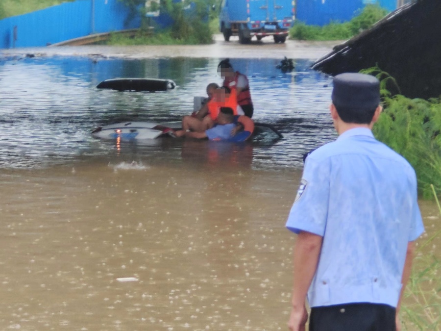 受台风“海葵”强降雨的影响,惠州市惠阳区多处出现水浸,尤其是一些地势较低的桥洞路段。2023年9月8日早上,惠州市惠阳区金惠大道高速公路桥底下因积水导致车辆被困,幸好惠阳公安民辅警及时赶到现场,成功营救出3名被困群众。