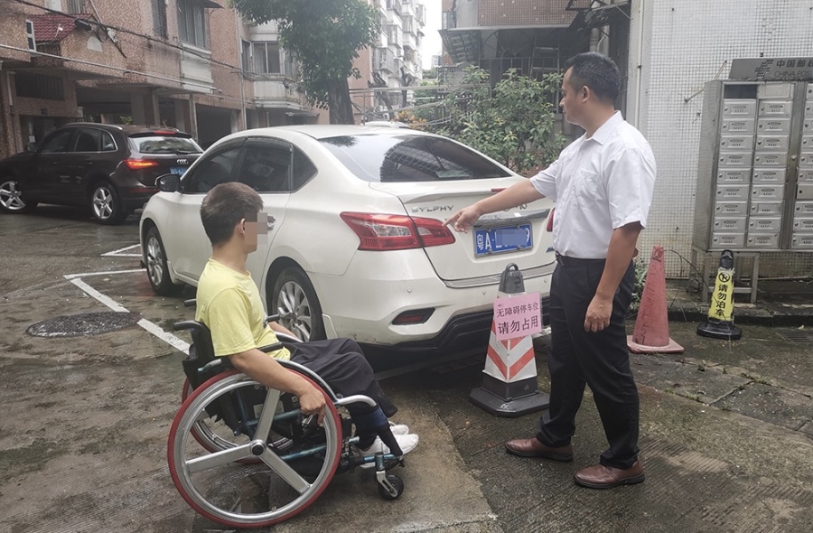 杨杨告诉记者,为了出行方便,他特意买了一辆代步汽车,但一直为停车问题所困扰。为了解决停车难的问题,前几天他向所在的沙湾东区社区居委会和小区物业沙湾美图物业管理服务公司提交了停车位的申请。东区社区和小区物业在接到了他的申请后,经过协调,高效落实安排,立即安排人员在他居住的楼栋就近划定了一个残疾人汽车专用停车位,免费供他停车,解决了他出入停车难的问题。