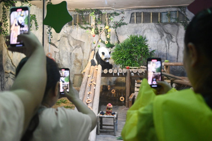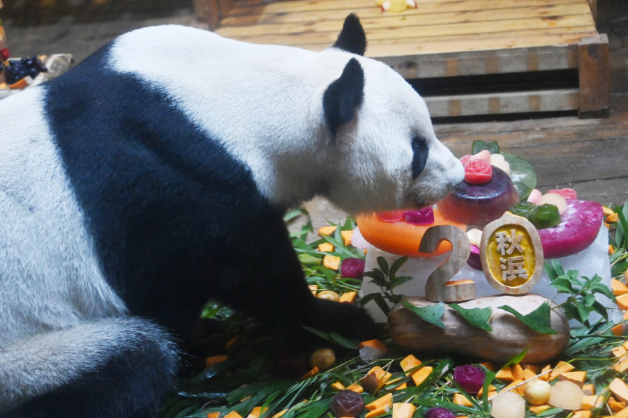 9月8日,生活在深圳野生动物园里的大熊猫“秋浜”迎来了20岁生日,适逢“白露”节气,“白露”是秋季的第3个节气。该园为大熊猫“秋浜”举办以“秋”为主题的生日会,热情粉丝也来到现场为“秋浜”送上“秋意”满满的祝福。