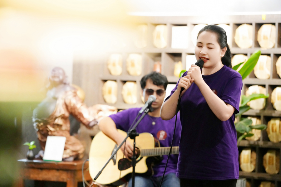 音乐社罗伟俊笑着说,乐队其实往常比较“电音风”,这个晚上就走了“民谣风”,希望给观众们带来轻松、舒服的感受:“也希望我们所支持的乡村孩子能像我们在台上演奏的歌曲《如愿》一样如愿。”