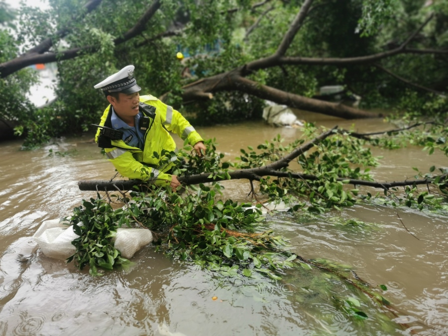 持续暴雨,番禺交警昼夜坚守在路面,积极排堵保畅,加强隐患排查。8日早上,市桥城区部分路面积水较深,番禺交警奋战一线,持续开展指挥疏导交通、路口临时管制、指引车辆分流行驶、清理路面倒伏大树等工作,最大限度减少强降雨带来的安全隐患,全力护航群众出行平安。