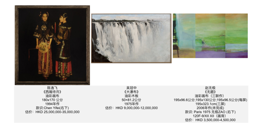 本季保利香港拍卖秋拍现当代艺术部门集结一系列现当代名家的重要力作:陈逸飞《西厢待月》重磅登场,不仅代表陈氏“海上旧梦”美学,更是其极为稀有的“海上风情”系列前期的典范之作。同时,隆重呈献吴冠中厚积而薄发的转折力作《大瀑布》,此作既承载了吴冠中前半生的艺术生命,也是1975年非洲坦赞铁路国家任务的见证,是艺术家自我留存的向往之作。另有抽象巨匠赵无极千禧年后创作的三联屏杰作《无题》首现拍场,据现有资料考察,《无题》为赵无极油画创作阶段最后一张作品。不仅是艺术家暮年之后对艺术精髓之理解,更可谓是这位艺术巨匠数十年人生宇宙观的精妙缩写。