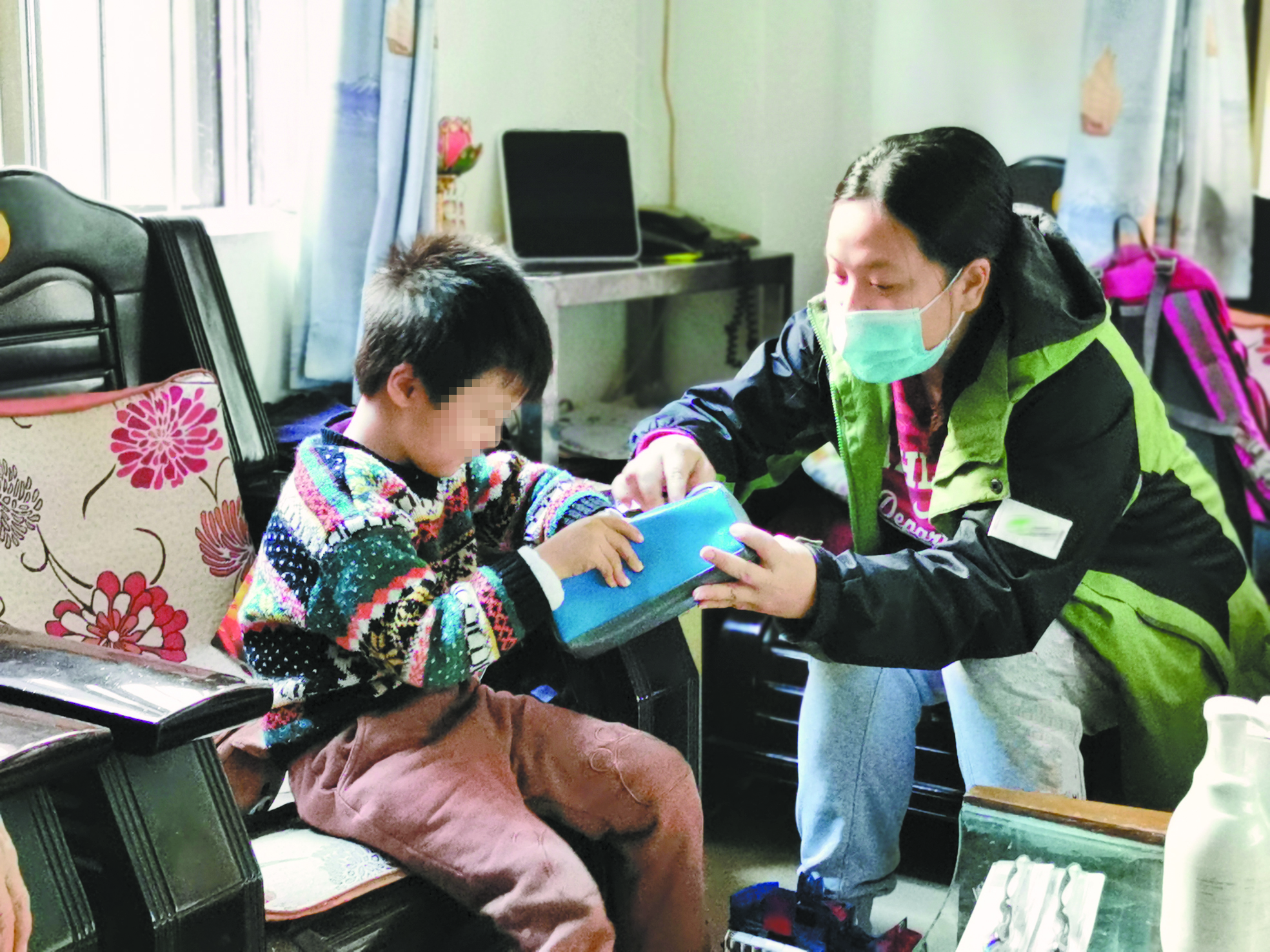 针对这一特殊情况,区民政局、区未保中心立即组织街道收集孩子亲属的亲属抚养能力、抚养意愿等信息,将阿花的4名子女列入“重点关注”等级名单,并同步进行保障措施评估,确保对他们的管护无缝衔接。最终,四姐妹中年龄较小的两个与舅舅一起生活,年龄较大的两姐妹则每天由义工们接送上学、放学。而黄结笑除了要每周回访几个孩子外,还要关心他们的生活和心理状况,建立详细的台账,每次黄结笑到来,她们都像见到妈妈一样开心,高兴地拥上来,兴奋地喊着“妈妈”。