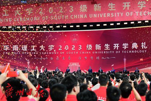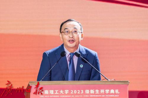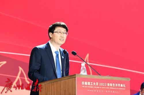 9月9日上午,华南理工大学举行2023级新生开学典礼。开学典礼在三校区同步进行,1.4万余名新生参与。典礼采用三校区互动直播的方式,全球广大校友、学生家长、社会友人在“云端”观礼,共襄盛典,累计观看人次近60万。 章熙春、吴波、许勇分别在三个校区为新生代表佩戴校徽,象征从此拥有了“华工人”这个新身份。 张立群作题为《筑牢基石 逐梦华园 一起向未来》的致辞。恰逢第39个教师节到来之际,他首先向学校全体教师送上节日问候,并诚挚欢迎新同学的到来。他希望新同学以“华工人”的全新身份,学习、历练、成长,在未来广阔的天地里飞得更高、行得更远。