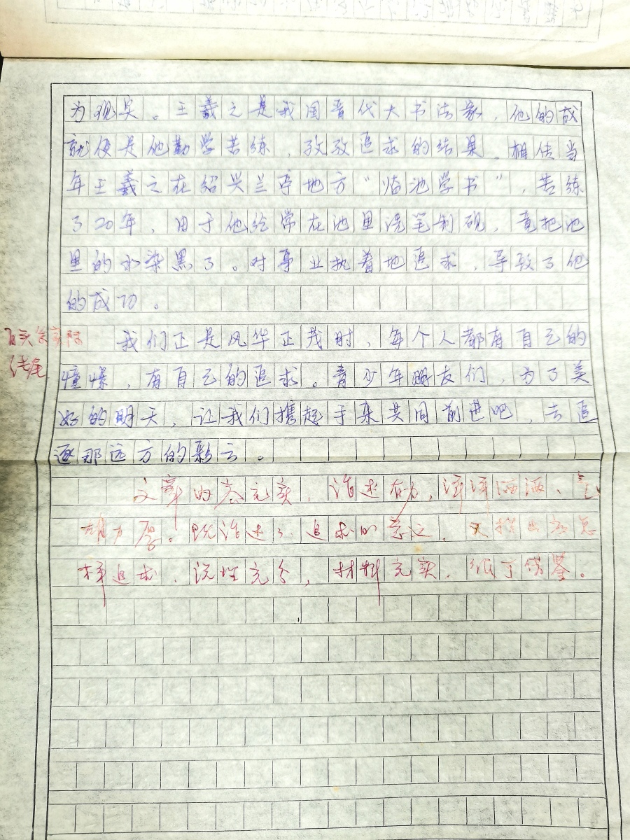 新学期起,王勇喜欢上了语文,“发现语文也没有那么难。除了老师布置的习作,我还主动练笔,每一篇文章邓老师都会认真写评语,不止是关于写作技巧的点评,还有人生的感悟。”几十篇邓老师精心批改、写满评语的习作,王勇一直珍藏至今。