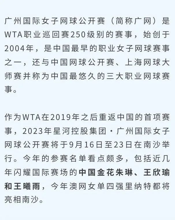 这两项国际网球赛事均为暌违数年后重新举办,而且都是首次落户南沙。届时,数百名来自世界各地的网球选手将齐聚南沙,这也标志着期待已久的网坛中国赛季正式拉开帷幕!