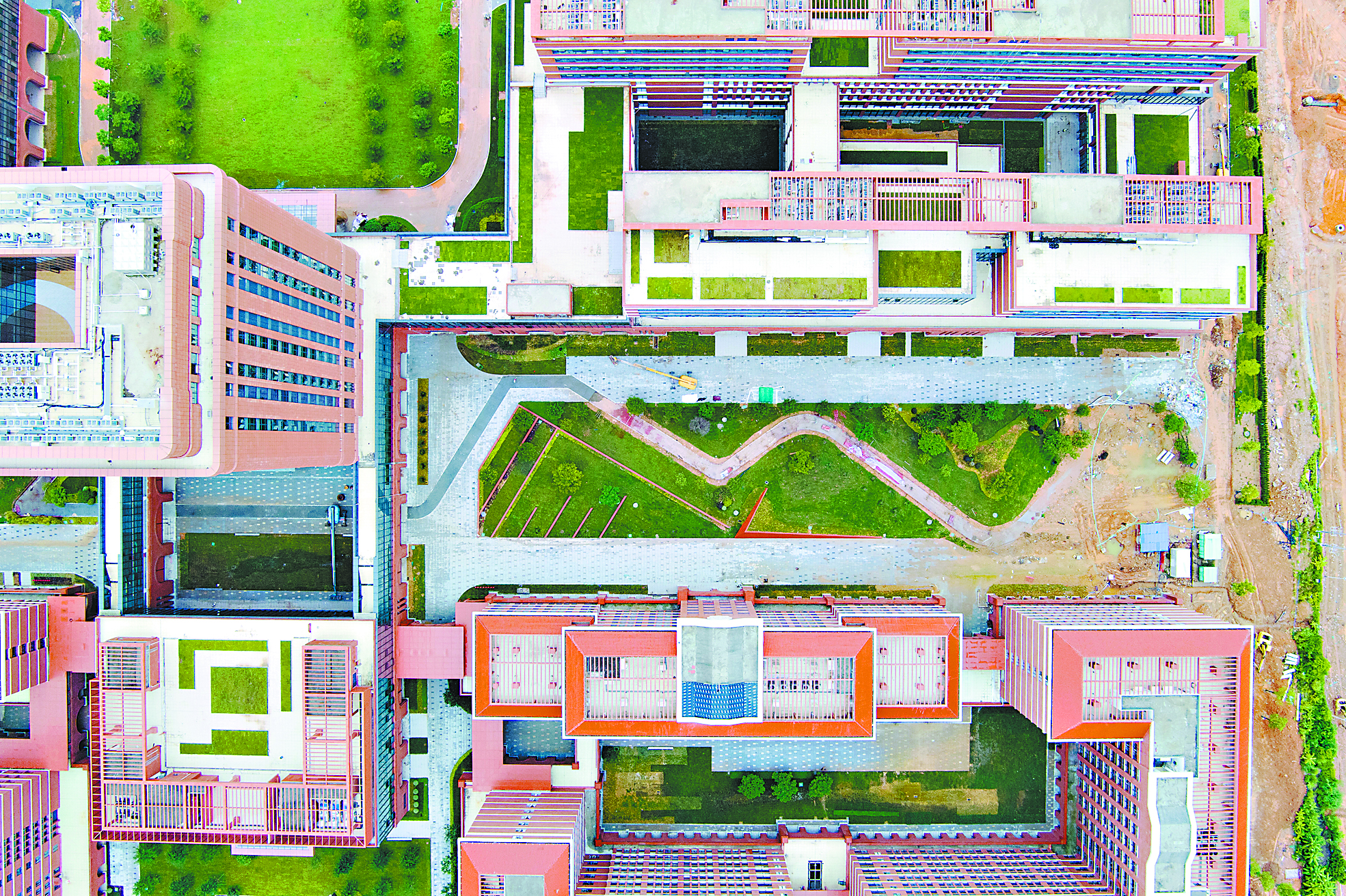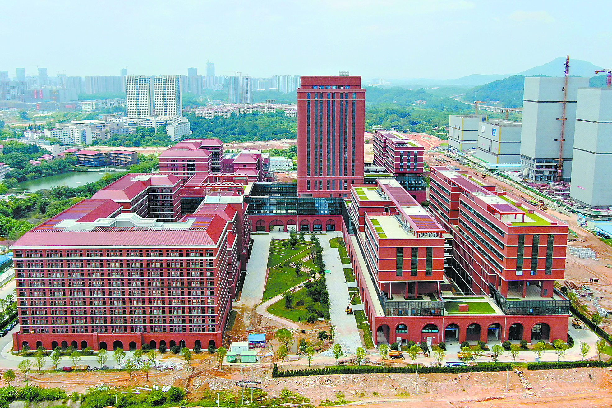 岭南红墙,连廊相通,在建的西安电子科技大学广州研究院(以下简称“西电广研院”)体现了融入粤港澳大湾区的建筑风格。