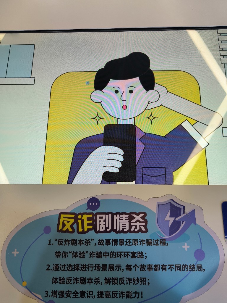 值得一提的是,馆内设置的网络游戏以在年轻人中流行的玩法相结合,寓教于乐。例如“反诈剧本杀”,通过故事还原诈骗过程,带领市民沉浸式感知诈骗过程的套路;同时,市民可以选择不同场景,不同的选择会带来不同的结果,深度“解锁”反诈知识,提升防范能力。