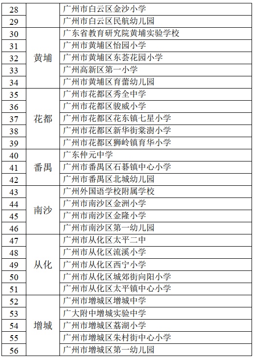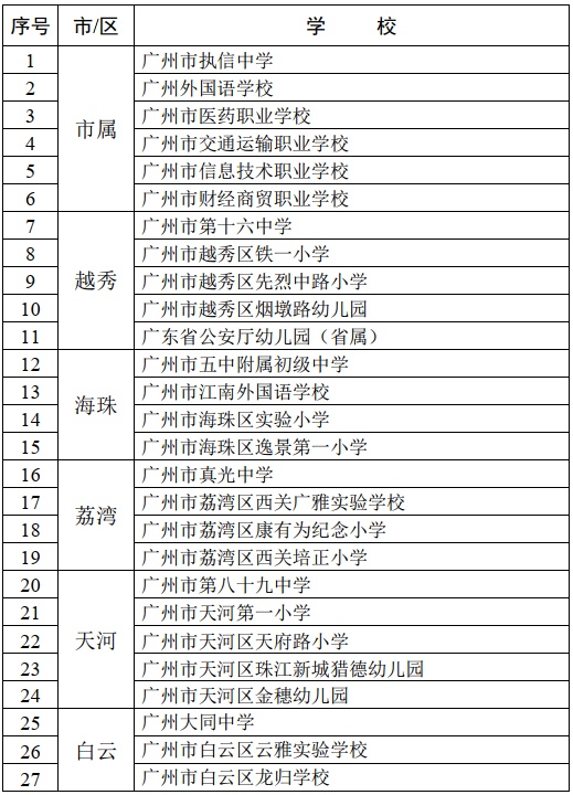 广州市首批中小学师德师风建设优秀学校名单