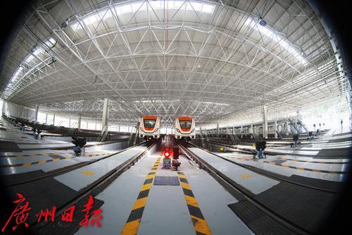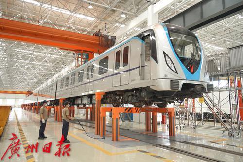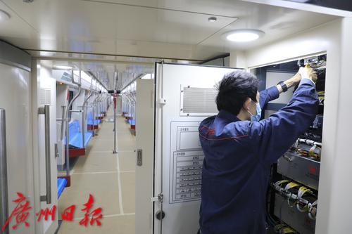 广州地铁工作人员正在做列车维修前的准备工作。