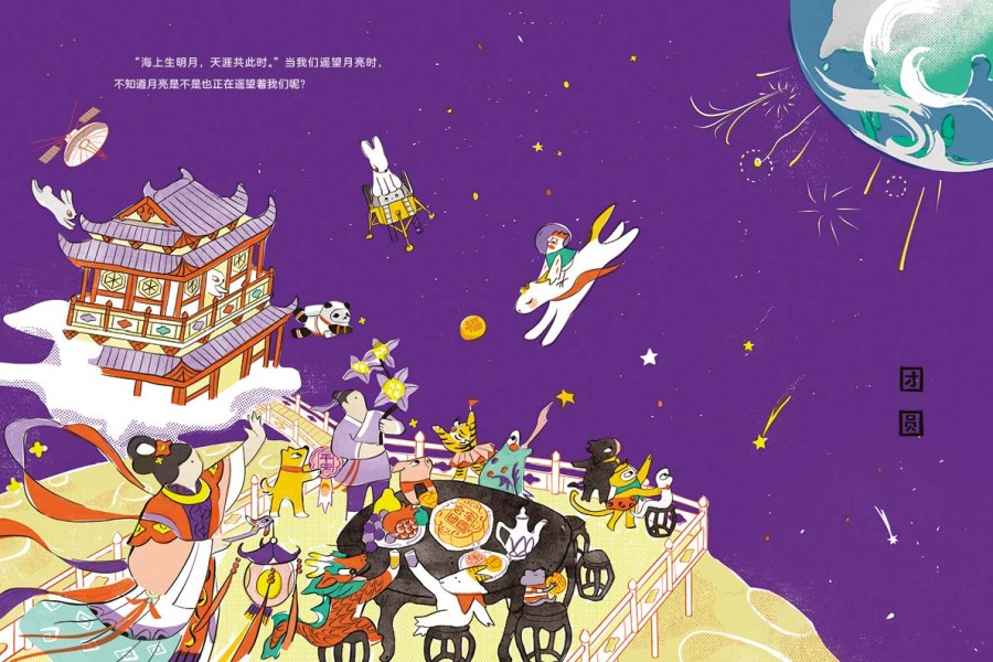 借鉴朱仙镇年画风格,以丰富的细节、大胆的撞色展现古老又时尚的中国。传统中秋节日,在现代中国有了新的气象。