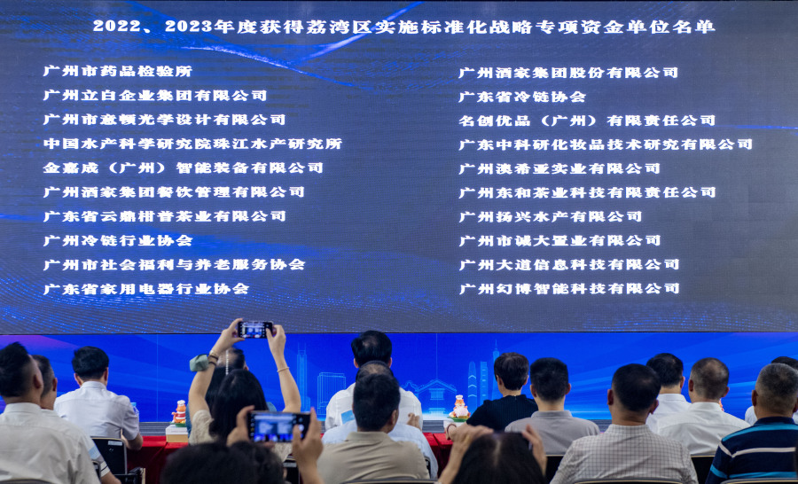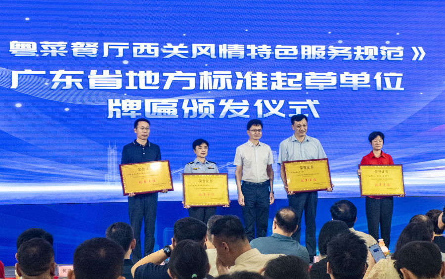 为更好地推动荔湾区餐饮行业品质提升,以高标准带动餐饮业高质量发展,荔湾区牵头制定《粤菜餐厅西关风情特色服务规范》省级地方标准,9月12日发布会上,广东省市场监管局宣读标准发布公告,并对标准起草单位及起草人代表颁发牌匾和证书。会上还通报2022、2023年度获得荔湾区实施标准化战略专项资金单位名单,并对有关单位颁发资助证书。
