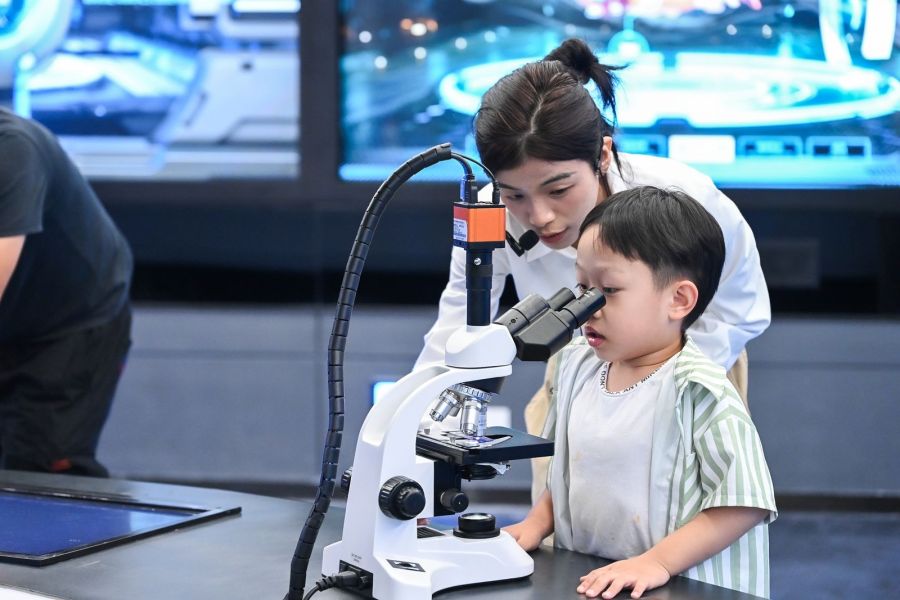 记者在探营中发现,长隆宇宙飞船的研学属性比较强,源于将游玩与科普的占比从8:2拉升至5:5。园区内设有鲨鱼课堂、海牛课堂等8大科普教室,并聘请了一批专业的科普讲师,采用演艺科普形式,一系列亲子STEAM课程更多强调科学工程思维,课程涉及数学、生命科学、物质科学、工程科学等多个科学领域。