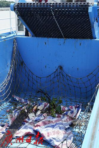 保洁船的自动传输带。