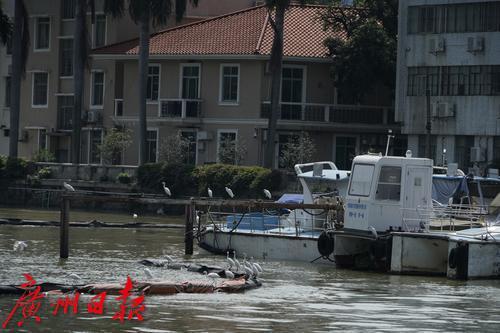 从海印桥前往二沙岛的必经之路,珠江上的鹭鸟成了城中一景。