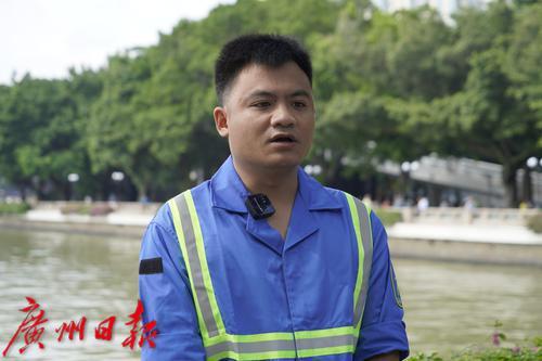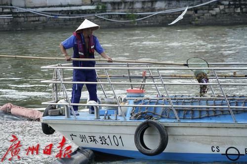 “现在珠江的环境好了很多,除了大雨天气以外,水面的垃圾并不多。”接受采访的水上环卫工人胡炽威说道。