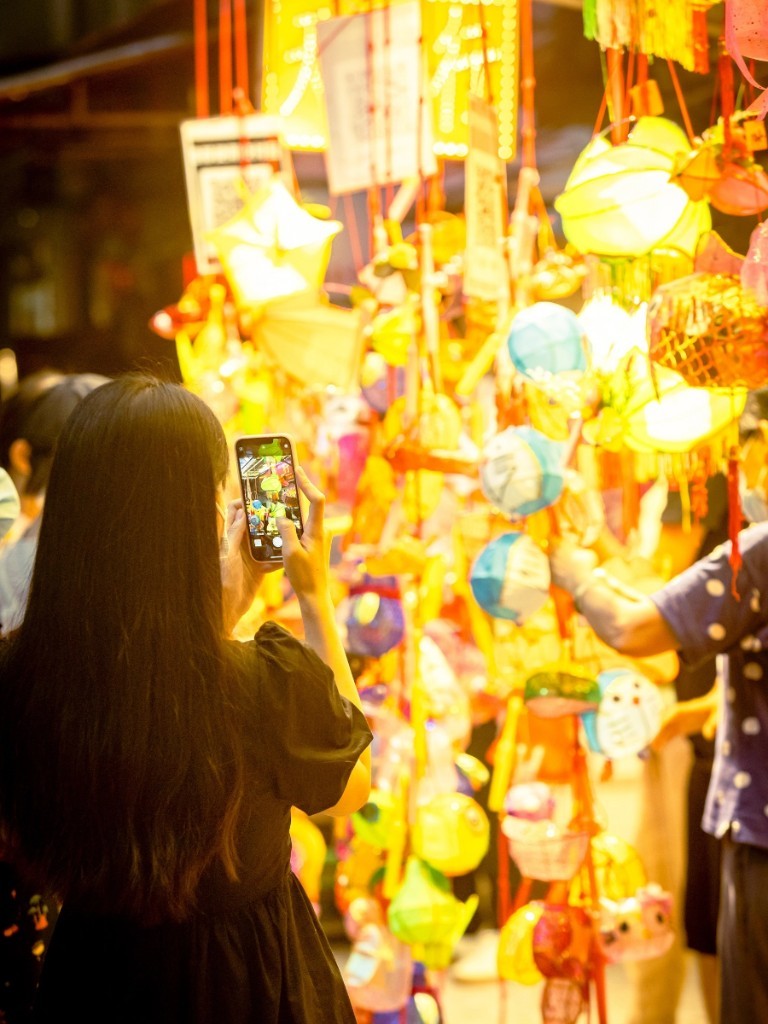 还有半个月就到中秋佳节。广州最出片的中秋灯笼就在越秀区光孝路。
