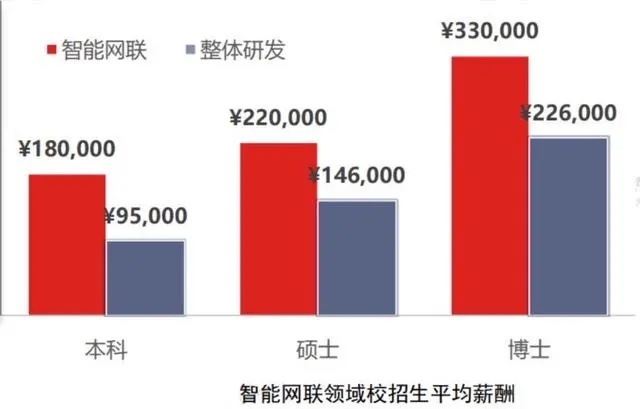 汽车智能网联与整体研发的校招生平均年薪对比(单位:万元)