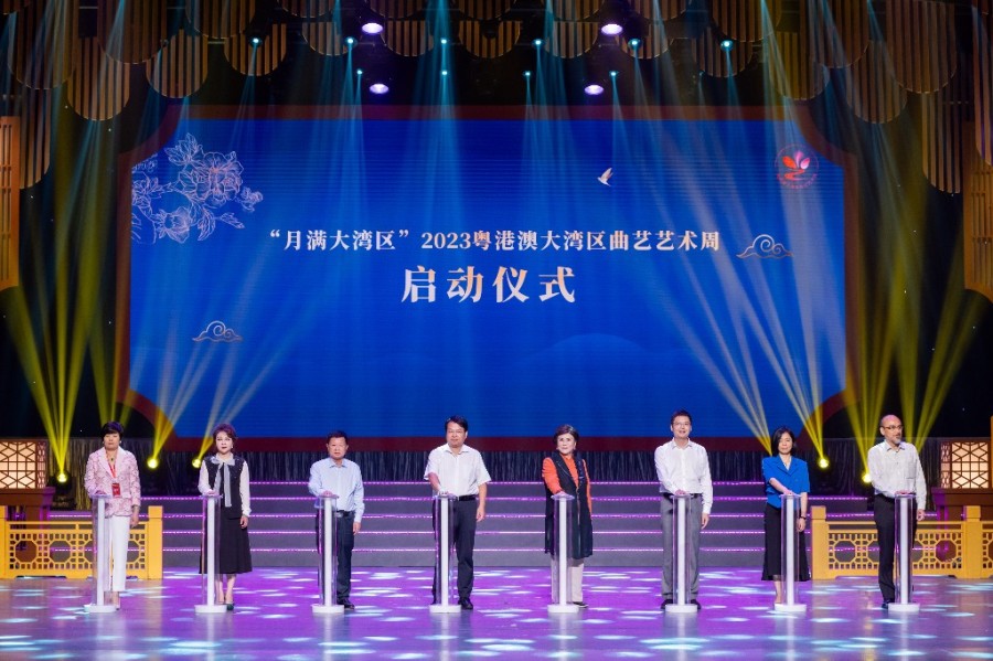 海上生明月,湾区共此时。9月13日晚,“月满大湾区”——2023粤港澳大湾区曲艺艺术周(以下简称“曲艺艺术周”)在佛山顺德演艺中心大剧院开幕。当晚,刘兰芳、种玉杰、高博文、陆锦花、苗阜、王声等中国曲协名家,梁玉嵘、蒋文端、逗笑、逗乐等省内名家,以及澳门曲艺名家朱振华、香港青年曲艺演员林颖诗等南北名家老倌在开幕式登台献艺,为曲艺爱好者送上一场精妙绝伦的文化盛宴。