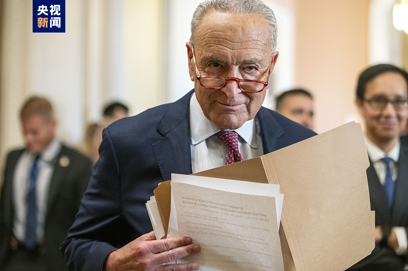 △共和党人宣布对拜登总统进行弹劾调查后,参议院多数党领袖查克·舒默向媒体发表讲话
