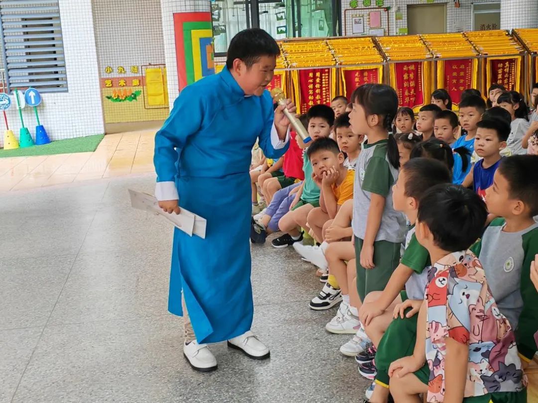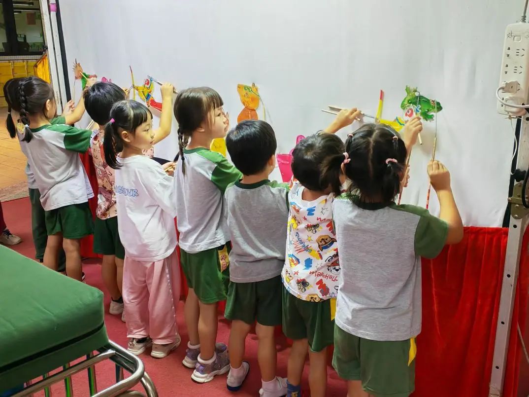 现场,老师为大家表演了漫画故事《鹤与龟》、神话故事《金斧头》,小朋友们看得津津有味,发出阵阵掌声;老师还与小观众进行互动,小朋友们也能积极举手参与,现场气氛非常活跃。此外,小朋友们还在老师的指导下,拿着皮影的操纵杆,在幕布前亲手体验了皮影戏表演的乐趣,感受传统文化的魅力。
