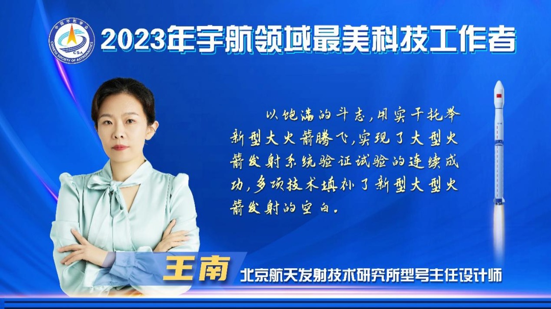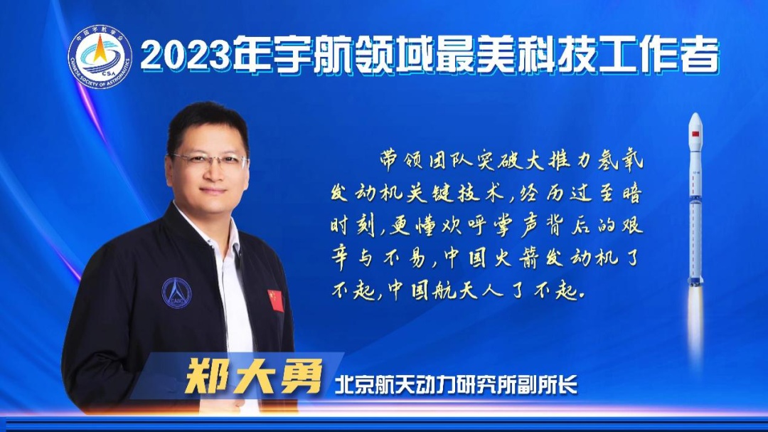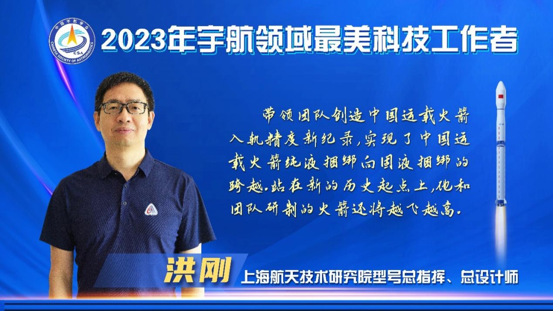9月14日,2023年宇航领域“最美科技工作者”揭晓仪式在第十届航天技术创新国际会议开幕式期间举行,洪刚、贾贺、刘志哲、王南、王晓波、叶春茂、郑大勇(按姓氏拼音排序)共7人荣获此称号。中国航天科技集团有限公司党组成员、副总经理张宏俊,中国科学院院士、中国航天科技集团有限公司科技委主任包为民现场颁发宇航领域“最美科技工作者”荣誉证书。