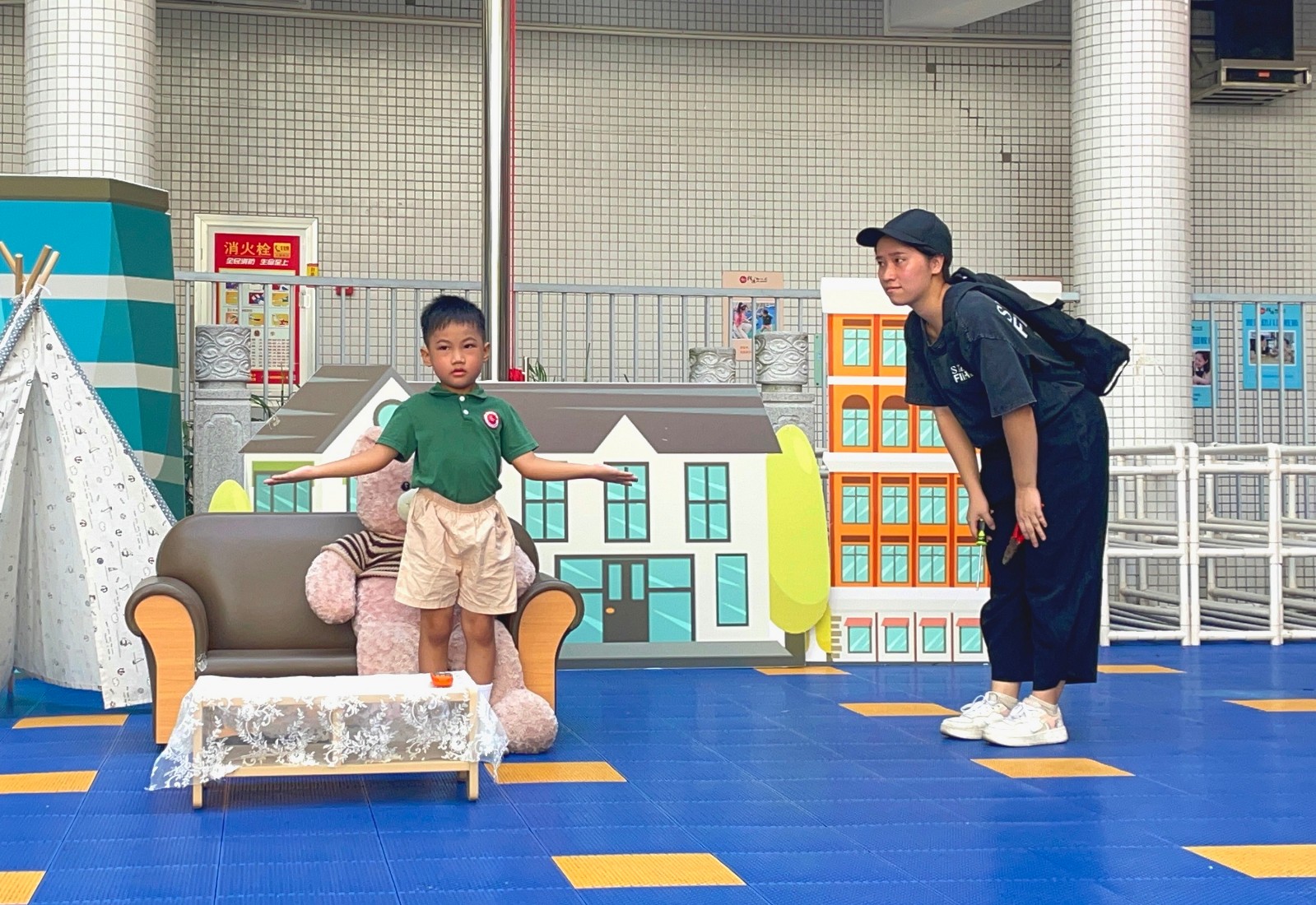 新学年开启,广州市天河区珠江新城猎德幼儿园筹备了以安全疏散演练、安全情景剧、互动问答、情境体验及体验式安全教育活动为主的开学安全第一课,用多种形式让安全意识深入小朋友心中。图为老师和小朋友共同演绎防诈骗安全情景剧。(来源:广州市天河区珠江新城猎德幼儿园)