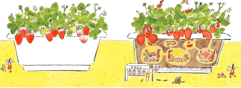 鬼头祈,1991年出生于静冈,毕业于京都造型艺术大学。她擅长使用日本画的技法,创作以迷你人物和草莓为主题的系列插画。作为插画家,她活跃在广告、动画、商业插画和出版等多个领域。她的图画书作品有《汤匙之王》《变成了草莓》等。