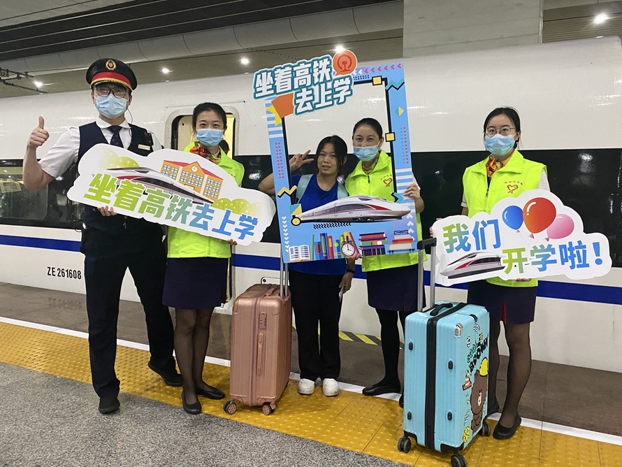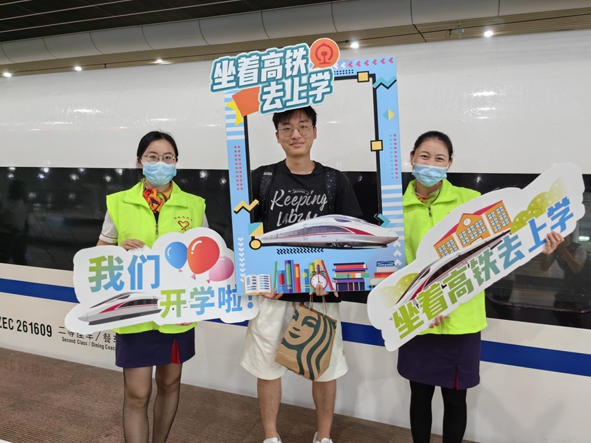 每年8月底至9月初是大学开学季,为做好学生运输工作,提升学生的乘车体验,近日,广铁集团广九客运段组织部分休班党团员志愿者在广州南站、深圳北站的站台上,手持特制主题KT板,邀请乘坐高铁的学子打卡留念,分享即将步入大学生活的喜悦心情。