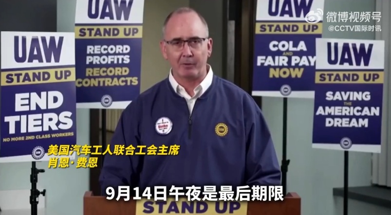 CCTV国际时讯消息,由于在最后期限前劳资双方未能通过谈判达成协议,美国三大车企工人开始罢工。