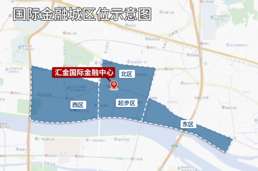 广州国际金融城分为4个区域,东区、西区、北区以及起步区。本次走访的起步区定位为数字金融总部核心区,占地面积1.32平方公里,共有38宗产业地块,目前剩余8宗待出让。