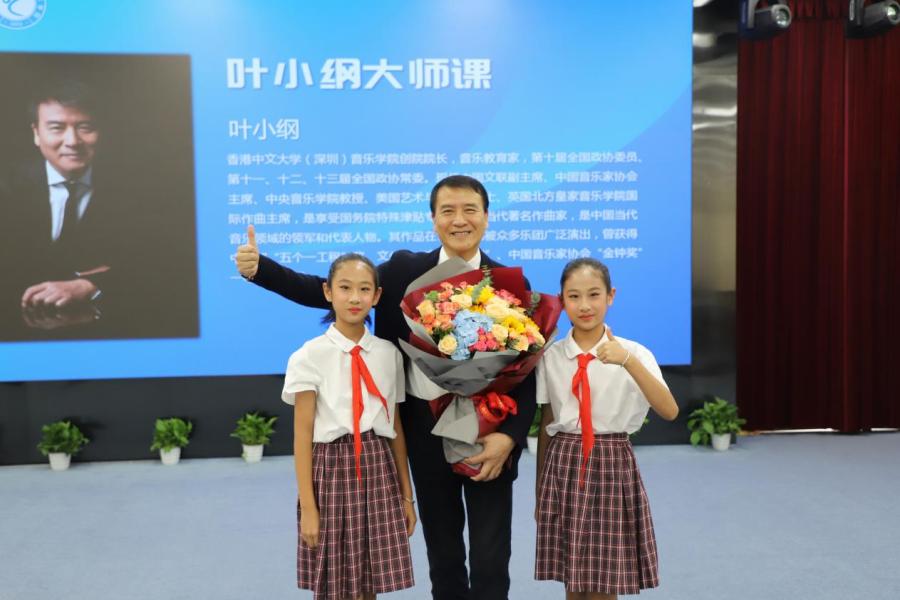 叶小纲表示,非常高兴看到孩子们在艺术课堂上让自己的特长得以发展,希望以少年艺术学院为契机,开启孩子们的人生之路,用音乐点亮人生,用文化展开视野。叶小纲充分肯定了荔园艺术教育成果,他寄语在场的老师和同学:音乐是陶冶人情操的,学习音乐首先就是要学会聆听,所以学习音乐不仅培养我们的艺术修养,也可以陶冶我们的道德情操。他邀请荔园少年艺术学院的孩子们有机会到香港中文大学(深圳)音乐学院去交流和表演。今后,香港中文大学(深圳)音乐学院也将会加大和荔园教育集团的交流,为孩子们提供更多常态的大师辅导和交流展示舞台。
