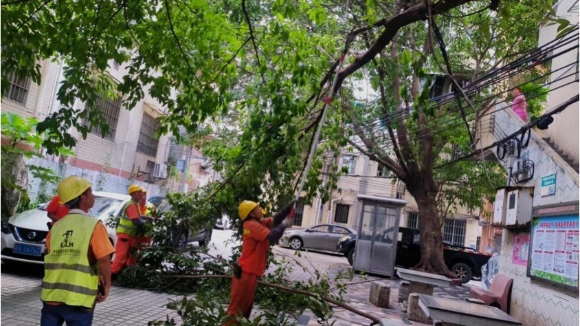 在收到这一求助工单后,考虑到关系市民的用电及出行安全,白鹤洞街道林长办对问题十分关注,工作人员迅速响应,马上前往了解情况,并进行紧急抢险。此时,距离市民反映上传求助工单仅过去23分钟。