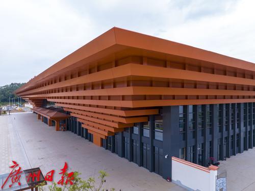 广汕高铁罗浮山站车站站房造型以榫卯的木结构形式为岀发点,木色为主色调。