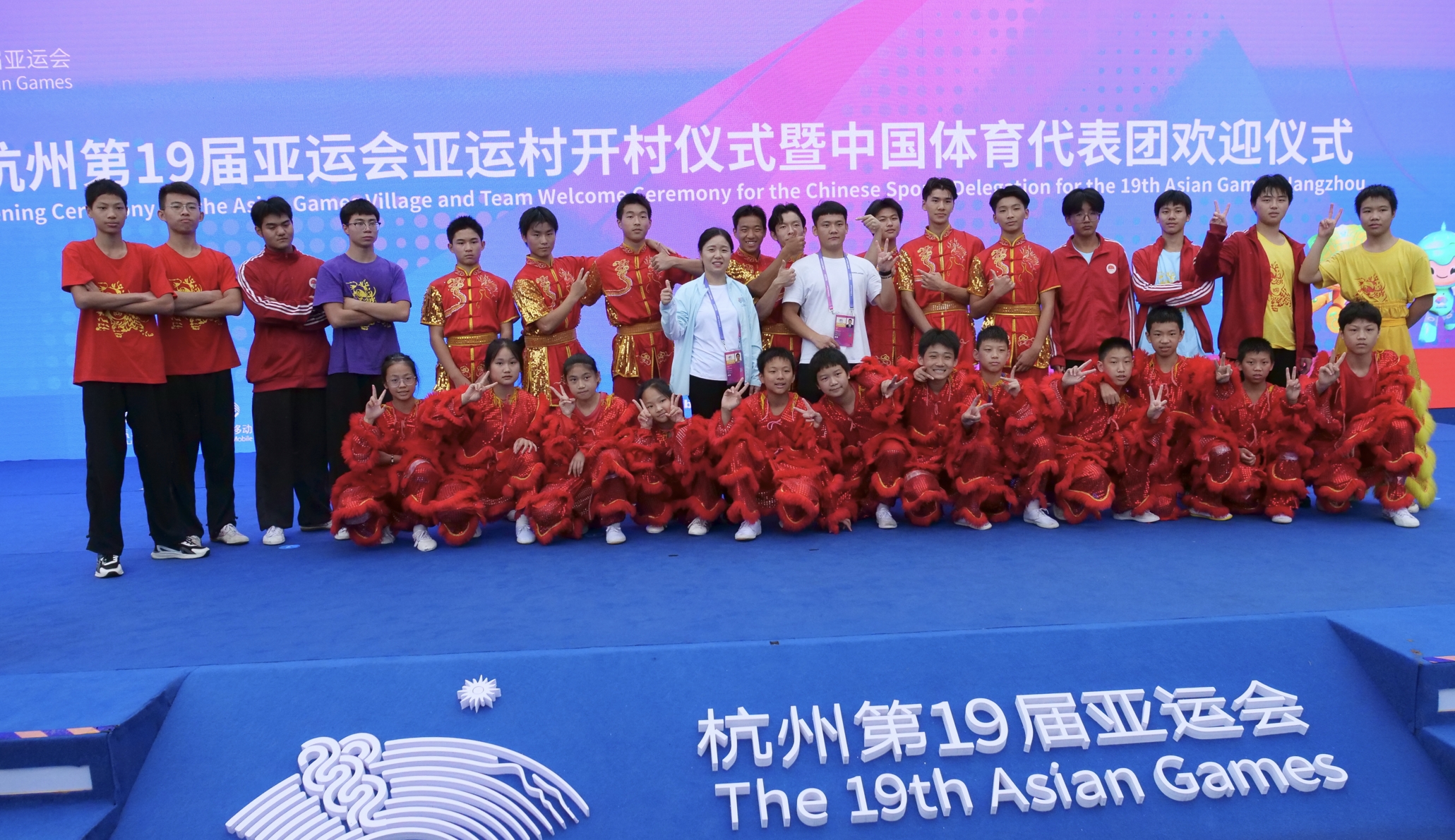 在欢迎仪式上,杭州市人大常委会主任、亚运村村长李火林致欢迎辞,热烈欢迎中国体育代表团入村,表示亚运村将按照“以运动员为中心,以服务赛事为核心”的办村宗旨,尽最大努力完善家的功能、营造家的氛围、提供家的服务。李火林与周进强还互赠纪念品。
