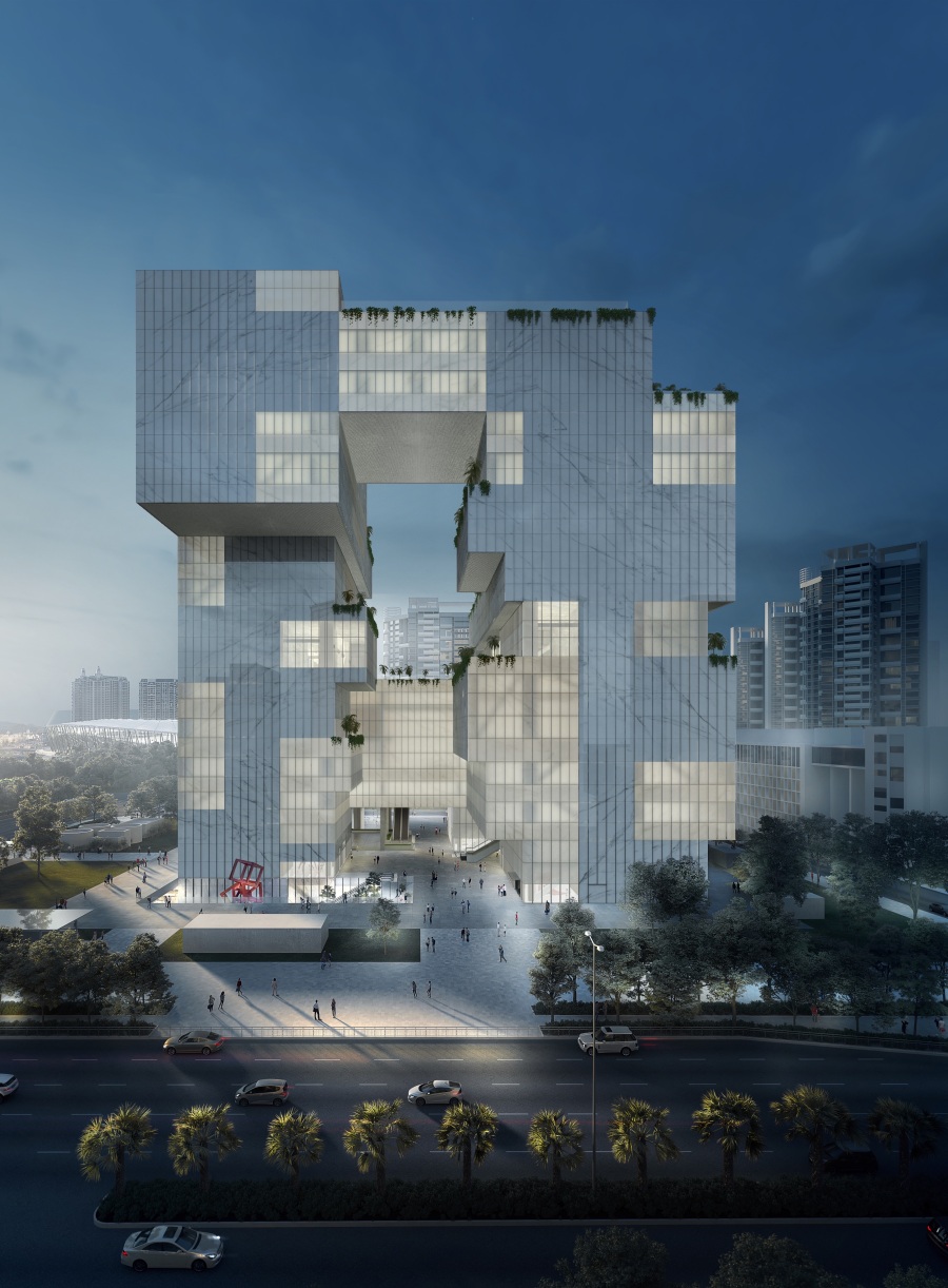 宝安公共文化艺术中心作为深圳西部岸线文化新地标,包括博物馆、美术馆、艺术馆三大功能场馆。项目位于宝安区新安街道创业一路与新湖路交会处,规划用地面积1.4万平方米,总建筑面积9.2万平方米,其中地上建筑5.6万平方米,地下建筑3.6万平方米,建筑高99.9米。目前,该项目处于主体施工阶段,钢结构主体已施工至F5层,预计2025年竣工交付。