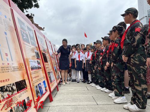 9月16日是我国第23个全民国防教育日,广州起义烈士陵园里,讲解员为孩子们带来一场妙趣横生的国防知识讲解。当天,“踔厉奋发强国防 勇毅前行向复兴”——“两弹一艇 强核报国”国防教育展览暨研学活动在此举行。