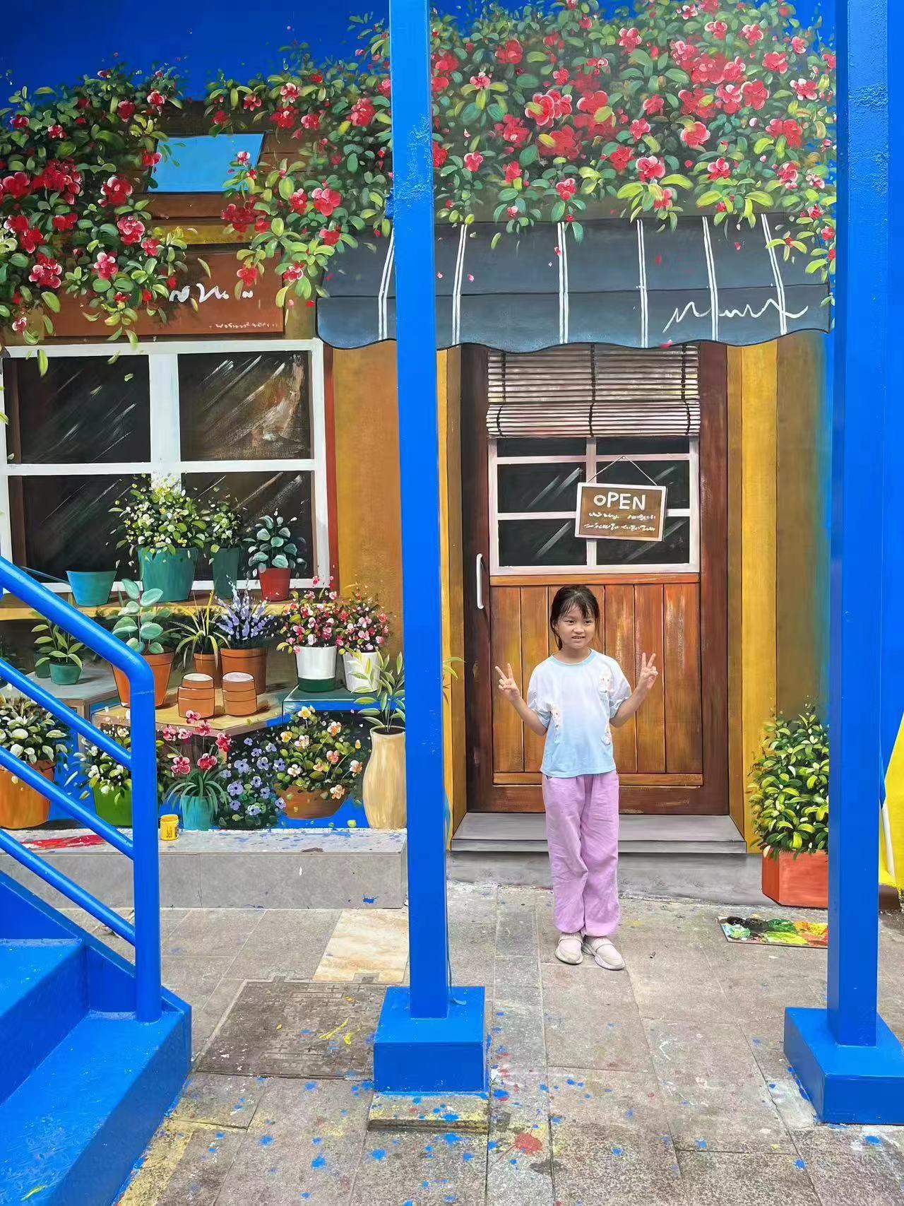 小朋友在“邻和里”网红街角留影。受访者供图