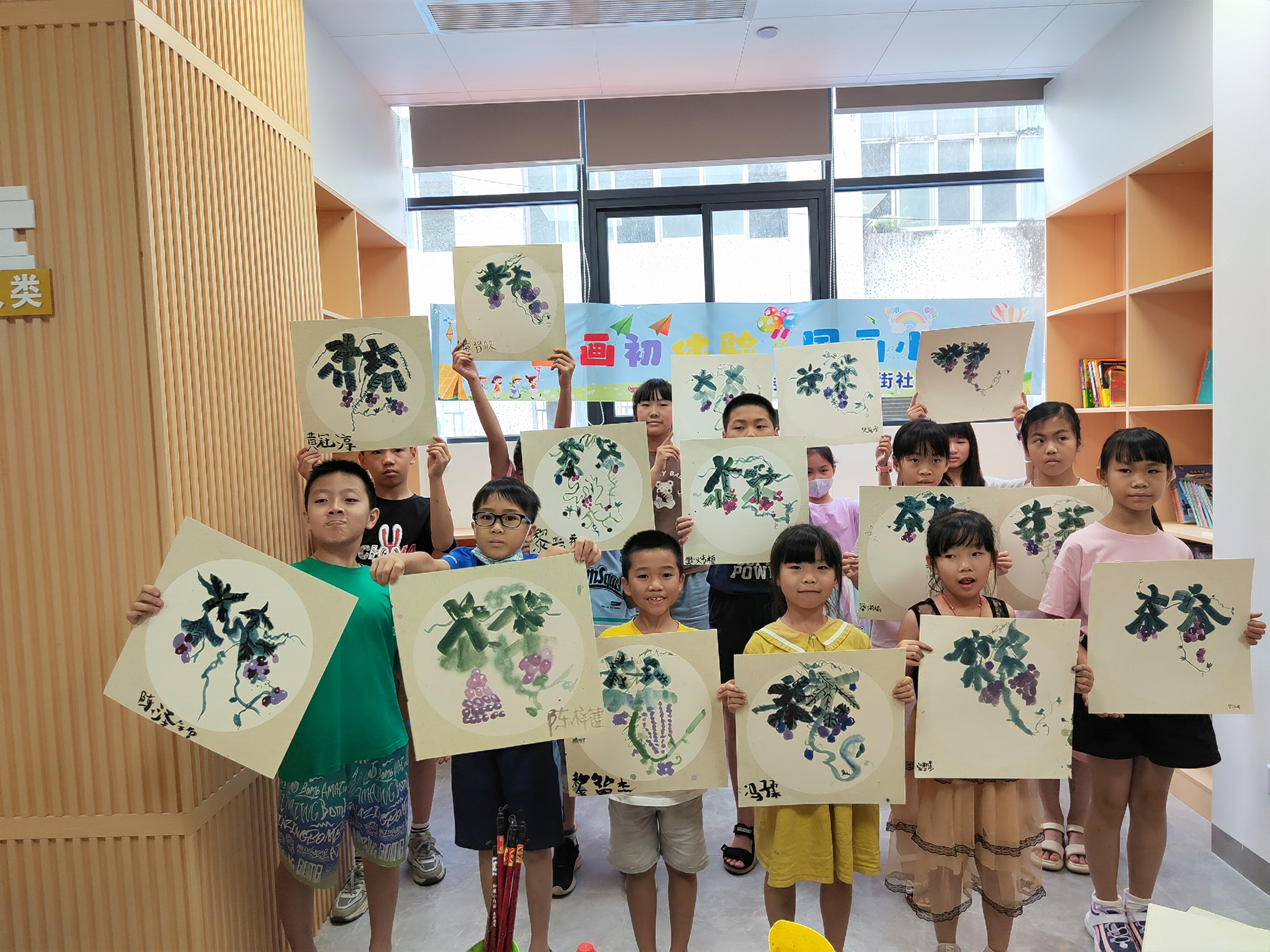 孩子们展示自己的国画作品。受访者供图