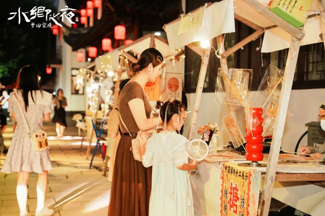 活动当晚,游客沉浸在一步一景的沉浸式体验场景中。民俗灯笼墙、千年诗廊、夜下游船、古风市集等氛围打造,营造出宛如宋代的真实场景。通过声光电技术的巧妙运用,整个场景充满了神秘而古典的氛围,如同时光倒流,穿越到了千年前的宋朝。或到现场汉服店体验专业的汉服妆造服务,身临其境地感受到宋朝的繁荣和风采。