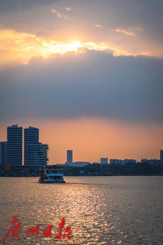 傍晚时分,洲头咀一带的天空还出现了夕阳。