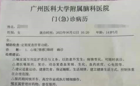 图:冬涵最近的病历中,有提到病情情况及处理建议。(受访者提供)