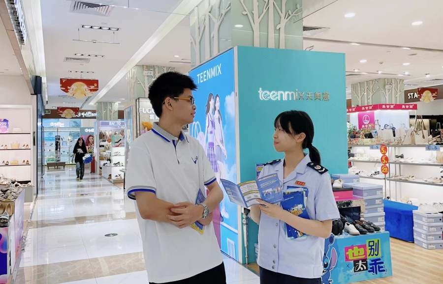 天河区税务局工作人员主动走进小微经营主体聚集的商圈和街道,向商户宣传最新税收优惠政策。