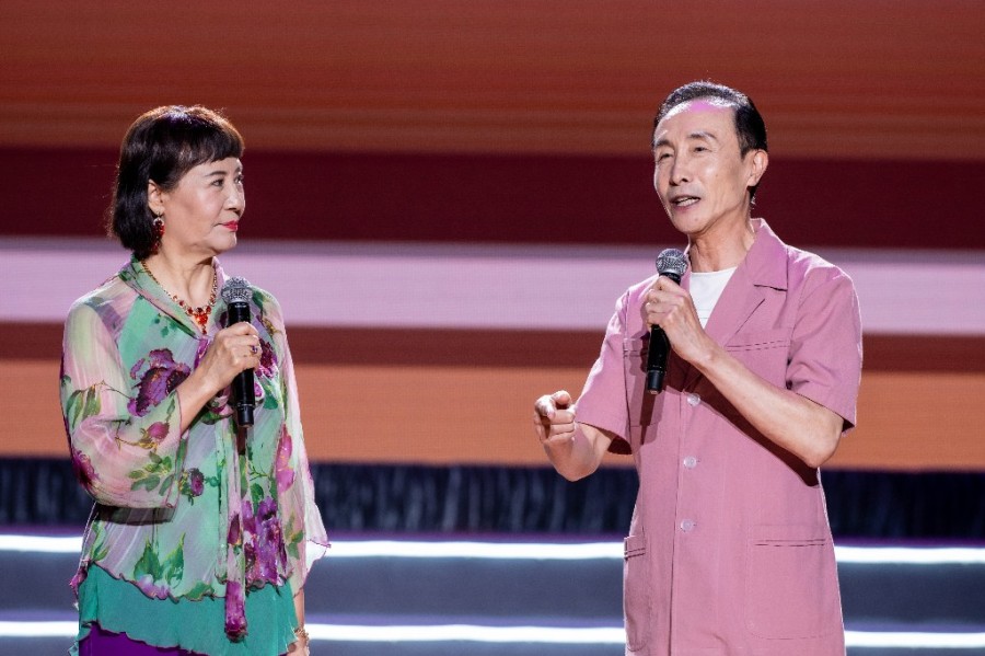 巩汉林(右)和妻子金珠登台演绎