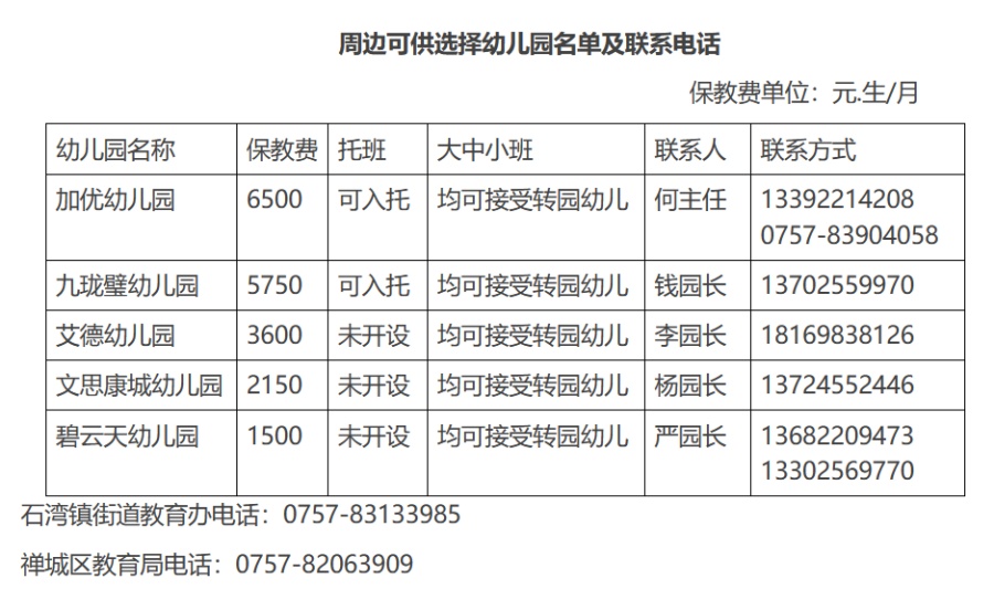 禅城区教育局获悉相关情况后,已第一时间成立应急处置小组。目前,该幼儿园周边有丰富的同类型民办学前教育资源可供家长选择,家长可根据自身情况,直接联系园长,禅城区教育局已协调相关幼儿园妥善安排好转园幼儿。如有需要,家长也可致电石湾镇街道教育办公室、禅城区教育局。