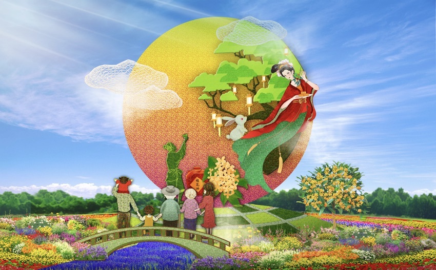 8.西单西北角的“花好月圆”花坛顶高8米,以一家人中秋团聚的温馨画面为场景,体现了花好月圆下百姓幸福生活。