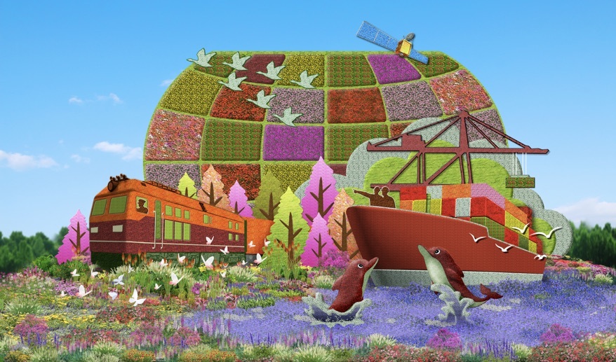 5.东单西南角的“和平发展”花坛顶高8米,以白鸽、帆船、骆驼等为主景,寓意走和平发展的中国现代化道路,展现合作共赢的美好未来。