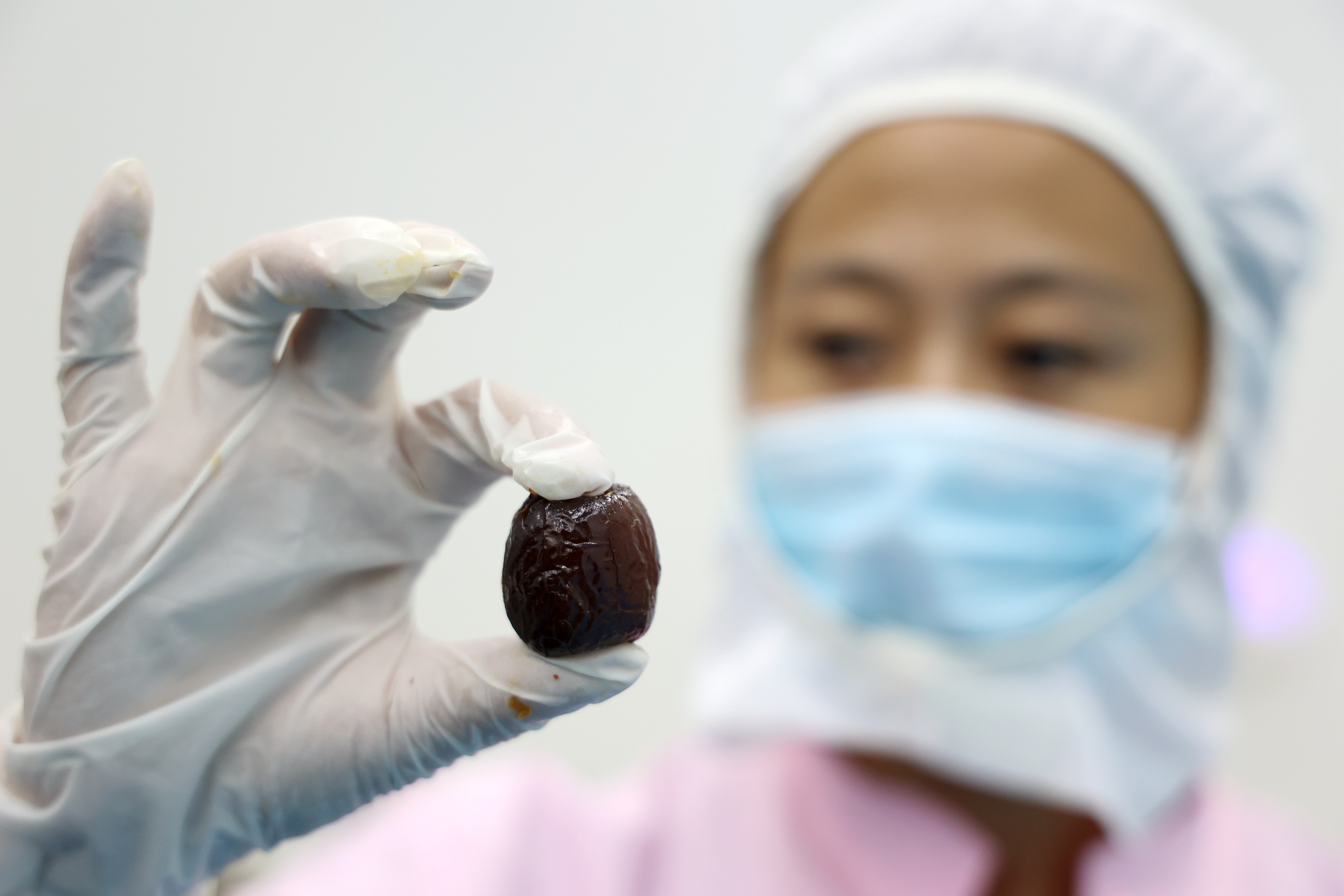 9月9日,在山东省乐陵市一家红枣深加工企业车间,工作人员查看加工的蜜枣。近年来,山东省乐陵市以科技创新引领产业转型升级,不断加大科技人才引进和科技资金投入,持续加强企业创新主体地位,促进产业链、创新链、人才链深度融合。目前,全市拥有技术创新中心、重点实验室、博士后科研工作站等科技创新平台182个,国家高新技术企业49家、国家科技型中小企业108家,推动全市企业与60余所高校院所建立技术合作关系,培育引进各类人才4.5万人。新华社发(初宝瑞摄)